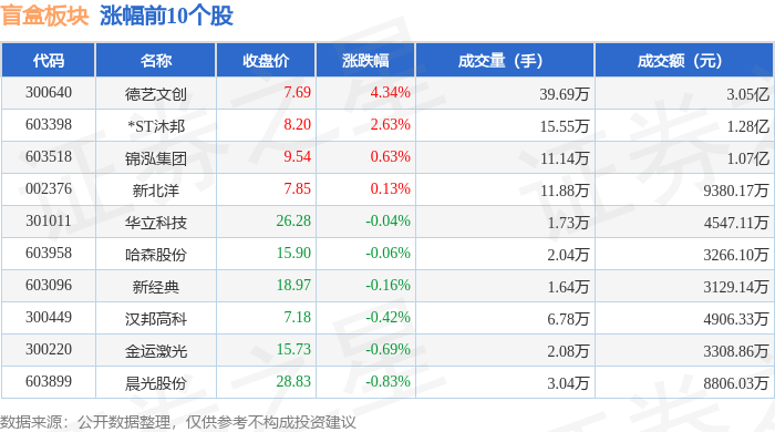 证券之星消息,11月14日盲盒板块较上一交易日下跌1.33%,青木科技领跌。当日上证指数报收于3990.49,下跌0.97%。深证成指报收于13216.03,下跌1.93%。盲盒板块个股涨跌见下表: