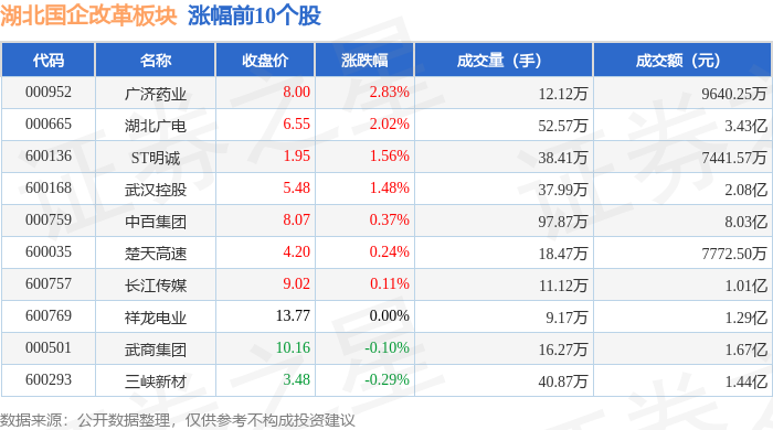 从资金流向上来看,当日湖北国企改革板块主力资金净流出3.52亿元,游资资金净流入5853.35万元,散户资金净流入2.93亿元。湖北国企改革板块个股资金流向见下表: