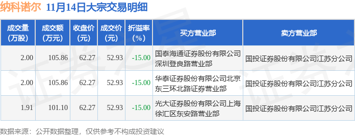 证券之星消息,11月14日纳科诺尔发生大宗交易,交易数据如下:
