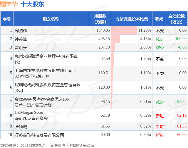 根据翔丰华2025年三季报公布的十大股东详情如下: