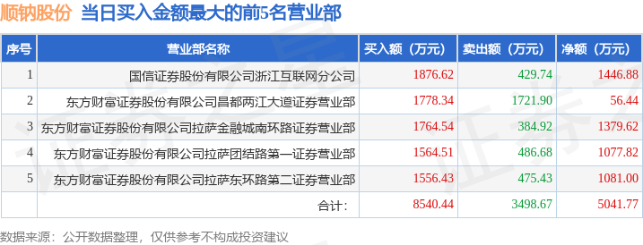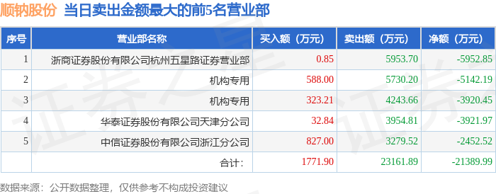 证券之星消息,沪深交易所2025年11月14日公布的交易公开信息显示,顺钠股份(000533)因日跌幅偏离值达到7%的前5只证券登上龙虎榜。此次是近5个交易日内第1次上榜。