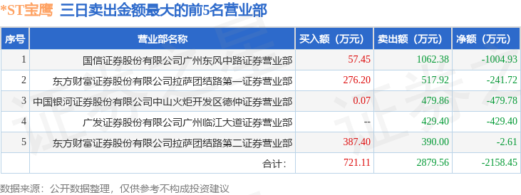 证券之星消息,沪深交易所2025年11月14日公布的交易公开信息显示,*ST宝鹰(002047)因连续三个交易日内,涨幅偏离值累计达到12%的ST证券、*ST证券和未完成股改证券登上龙虎榜。此次是近5个交易日内第1次上榜。