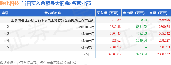 从龙虎榜公布的当日买卖数据来看,机构合计净买入1.02亿元,北向资金合计净买入2800.74万元。上海超短帮、呼家楼等知名游资榜上有名。(知名游资上海超短帮一般指国泰海通证券股份有限公司上海静安区新闸路证券营业部席位、知名游资呼家楼一般指中信建投证券股份有限公司北京东城分公司席位,根据市场资料整理,仅供参考)