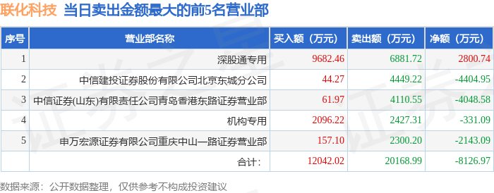证券之星消息,沪深交易所2025年11月14日公布的交易公开信息显示,联化科技(002250)因日涨幅偏离值达到7%的前5只证券登上龙虎榜。此次是近5个交易日内第1次上榜。