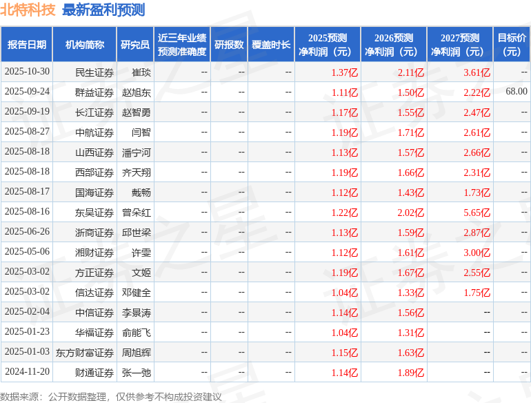 北特科技2025年三季报显示,前三季度公司主营收入17.12亿元,同比上升17.5%;归母净利润9266.98万元,同比上升52.39%;扣非净利润8444.76万元,同比上升69.38%;其中2025年第三季度,公司单季度主营收入5.99亿元,同比上升23.07%;单季度归母净利润3766.93万元,同比上升64.4%;单季度扣非净利润3270.39万元,同比上升84.02%;负债率50.36%,投资收益-52.45万元,财务费用1403.47万元,毛利率19.86%。