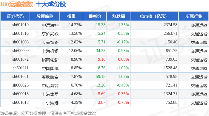 180运输(000027)指数十大成份股详情如下: