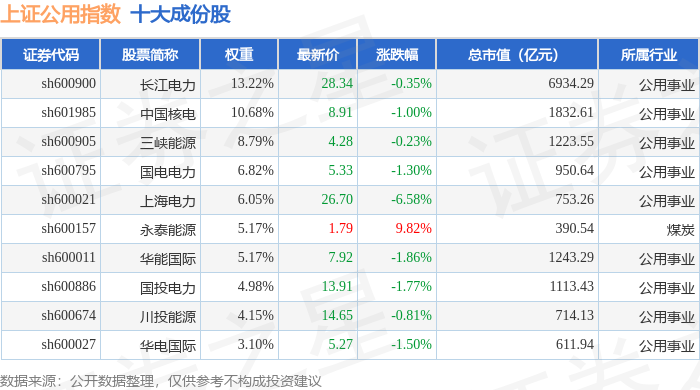 证券之星消息,11月14日,上证公用(000041)指数报收于2680.15点,跌0.64%,成交176.87亿元,换手率1.51%。当日该指数成份股中,上涨的有6家,永泰能源以9.82%的涨幅领涨,下跌的有22家,上海电力以6.58%的跌幅领跌。