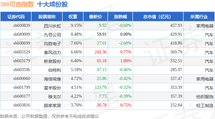 资金流向方面,380可选(000107)指数成份股当日主力资金净流出合计3.21亿元,游资资金净流出合计1438.7万元,散户资金净流入合计3.36亿元。成份股资金流向详情见下表: