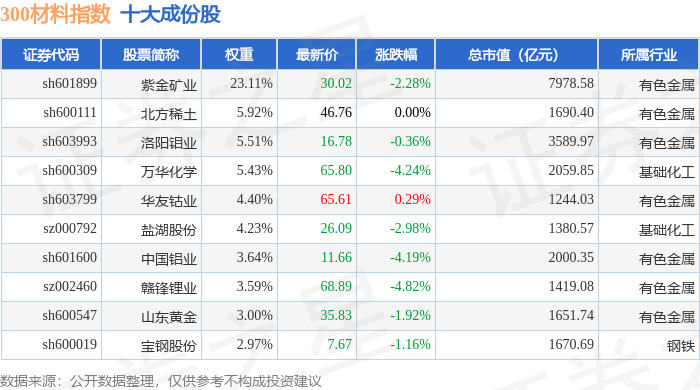 证券之星消息,11月14日,300材料(000909)指数报收于3751.97点,跌2.09%,成交616.36亿元,换手率1.55%。当日该指数成份股中,上涨的有3家,包钢股份以0.38%的涨幅领涨,下跌的有27家,天齐锂业以4.86%的跌幅领跌。