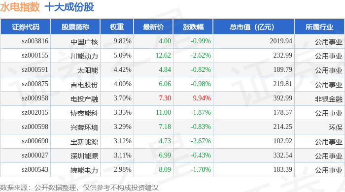 资金流向方面,水电指数(399234)成份股当日主力资金净流出合计2.23亿元,游资资金净流入合计8066.65万元,散户资金净流入合计1.42亿元。成份股资金流向详情见下表: