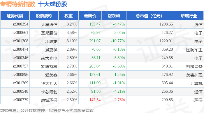 资金流向方面,专精特新(399267)指数成份股当日主力资金净流出合计47.26亿元,游资资金净流入合计9.5亿元,散户资金净流入合计37.76亿元。成份股资金流向详情见下表: