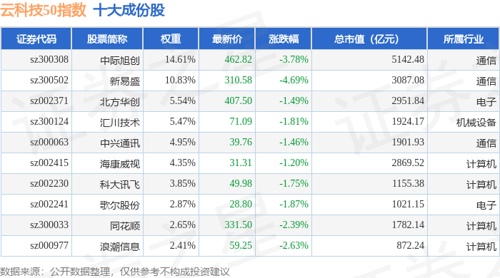 证券之星消息,11月14日,云科技50(399279)指数报收于4451.31点,跌2.67%,成交739.57亿元,换手率2.06%。当日该指数成份股中,上涨的有4家,东华软件以1.1%的涨幅领涨,下跌的有46家,信维通信以4.84%的跌幅领跌。
