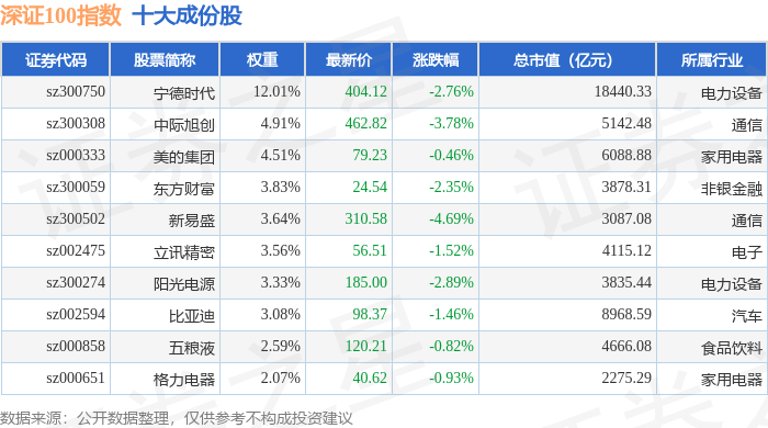 资金流向方面,深证100(399330)指数成份股当日主力资金净流出合计154.22亿元,游资资金净流入合计63.15亿元,散户资金净流入合计91.08亿元。成份股资金流向详情见下表:
