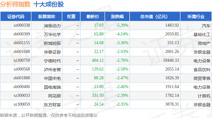 分析师指数(399354)十大成份股详情如下: