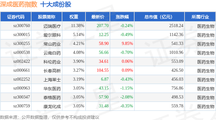 深成医药(399685)指数十大成份股详情如下: