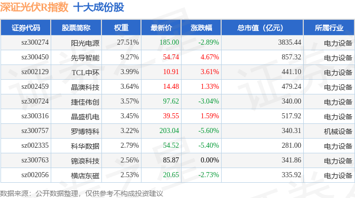 深证光伏R(470035)指数十大成份股详情如下: