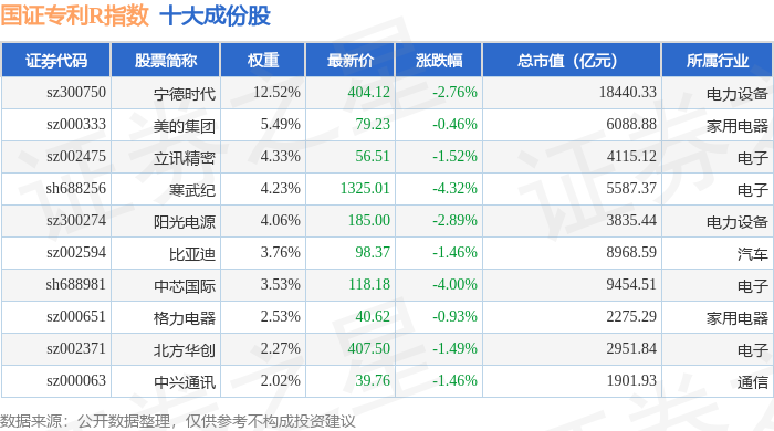 国证专利R(480070)指数十大成份股详情如下: