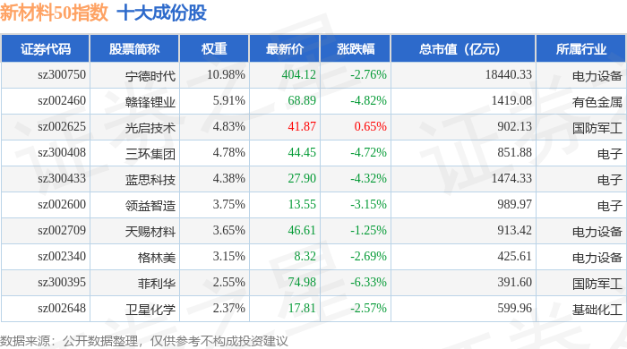 资金流向方面,新材料50(970042)指数成份股当日主力资金净流出合计51.47亿元,游资资金净流入合计21.11亿元,散户资金净流入合计30.35亿元。成份股资金流向详情见下表: