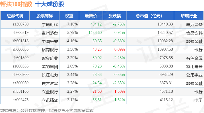 资金流向方面,帮扶100(980065)指数成份股当日主力资金净流出合计126.5亿元,游资资金净流入合计46.02亿元,散户资金净流入合计80.48亿元。成份股资金流向详情见下表: