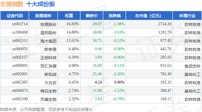 资金流向方面,生猪指数(980073)成份股当日主力资金净流出合计3.13亿元,游资资金净流入合计2.12亿元,散户资金净流入合计1.01亿元。成份股资金流向详情见下表: