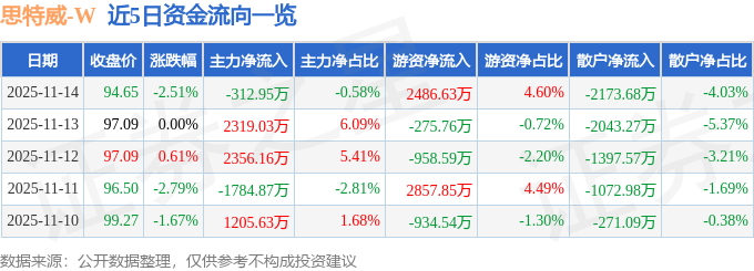 证券之星消息,截至2025年11月14日收盘,思特威(688213)报收于94.65元,下跌2.51%,换手率1.75%,成交量5.66万手,成交额5.4亿元。