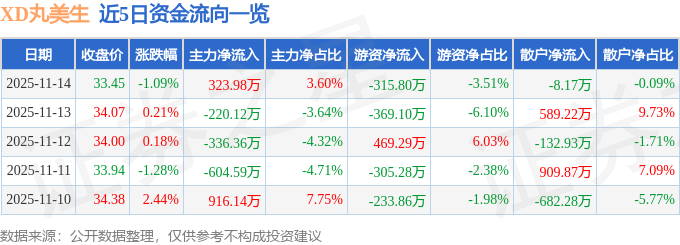 证券之星消息,截至2025年11月14日收盘,XD丸美生(603983)报收于33.45元,下跌1.09%,换手率0.66%,成交量2.66万手,成交额9003.06万元。