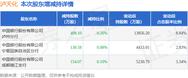 证券之星消息,11月14日泸天化发布公告《泸天化:简式权益变动书(中国银行)》,其股东中国银行股份有限公司泸州分行、中国银行股份有限公司宁夏回族自治区分行、中国银行股份有限公司成都锦江支行于2025年11月4日至2025年11月14日间合计减持692.75万股,占公司目前总股本的0.4419%,变动期间该股股价上涨7.06%,截止11月14日收盘报4.7元。