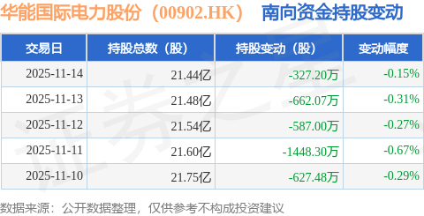证券之星消息,11月14日南向资金减持327.2万股华能国际电力股份(00902.HK)。近5个交易日中,获南向资金减持的有5天,累计净减持3652.05万股。近20个交易日中,获南向资金减持的有16天,累计净减持1.22亿股。截至目前,南向资金持有华能国际电力股份(00902.HK)21.44亿股,占公司已发行普通股的45.61%。