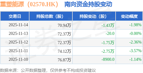 证券之星消息,11月14日南向资金减持1.43万股重塑能源(02570.HK)。近5个交易日中,获南向资金减持的有5天,累计净减持6.82万股。近20个交易日中,获南向资金减持的有15天,累计净减持9.28万股。截至目前,南向资金持有重塑能源(02570.HK)70.94万股,占公司已发行普通股的1.22%。