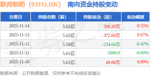 证券之星消息,11月14日南向资金增持308.2万股联邦制药(03933.HK)。近5个交易日中,获南向资金增持的有3天,累计净增持495.0万股。近20个交易日中,获南向资金增持的有9天,累计净增持55.4万股。截至目前,南向资金持有联邦制药(03933.HK)5.65亿股,占公司已发行普通股的28.63%。