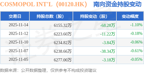证券之星消息,11月14日南向资金减持68.28万股COSMOPOL INT'L(00120.HK)。近5个交易日中,获南向资金减持的有5天,累计净减持124.86万股。近20个交易日中,获南向资金减持的有20天,累计净减持198.6万股。截至目前,南向资金持有COSMOPOL INT'L(00120.HK)6155.32万股,占公司已发行普通股的4.59%。
