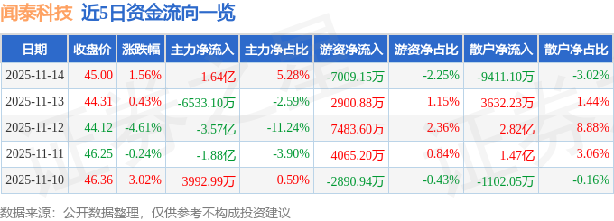 11月14日的资金流向数据方面,主力资金净流入1.64亿元,占总成交额5.28%,游资资金净流出7009.15万元,占总成交额2.25%,散户资金净流出9411.1万元,占总成交额3.02%。