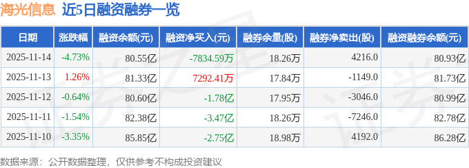 海光信息融资融券信息显示,融资方面,当日融资买入5.8亿元,融资偿还6.59亿元,融资净偿还7834.59万元。融券方面,融券卖出5570.0股,融券偿还1354.0股,融券余量18.26万股,融券余额3875.02万元。融资融券余额80.93亿元。