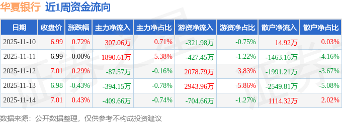 沪深股通持股方面,截止2025年11月14日收盘,华夏银行沪股通持股数为4.73亿股,占流通股比为308.0%。