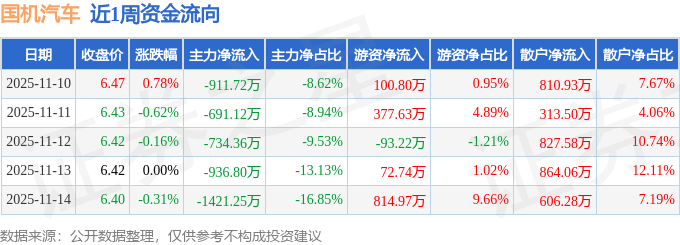 资金流向数据方面,本周国机汽车主力资金合计净流出4695.26万元,游资资金合计净流入1272.91万元,散户资金合计净流入3422.35万元。本周资金流向一览见下表: