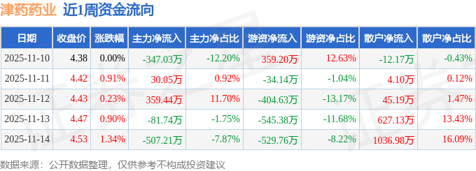 资金流向数据方面,本周津药药业主力资金合计净流出546.5万元,游资资金合计净流出1154.72万元,散户资金合计净流入1701.22万元。本周资金流向一览见下表: