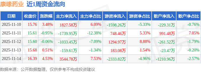 资金流向数据方面,本周康缘药业主力资金合计净流入2439.35万元,游资资金合计净流出1705.57万元,散户资金合计净流出733.78万元。本周资金流向一览见下表: