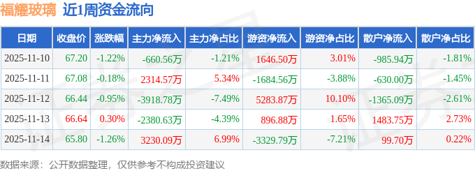 资金流向数据方面,本周福耀玻璃主力资金合计净流出1415.31万元,游资资金合计净流入2812.9万元,散户资金合计净流出1397.59万元。本周资金流向一览见下表: