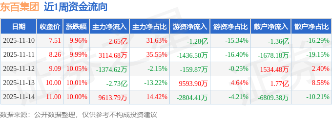 资金流向数据方面,本周东百集团主力资金合计净流入1.05亿元,游资资金合计净流出7637.06万元,散户资金合计净流出2845.57万元。本周资金流向一览见下表: