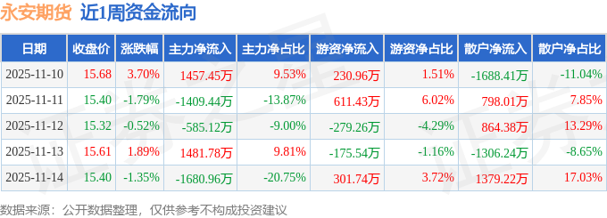 资金流向数据方面,本周永安期货主力资金合计净流出736.29万元,游资资金合计净流入689.32万元,散户资金合计净流入46.96万元。本周资金流向一览见下表: