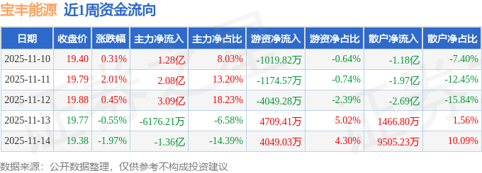 资金流向数据方面,本周宝丰能源主力资金合计净流入4.48亿元,游资资金合计净流入2514.77万元,散户资金合计净流出4.74亿元。本周资金流向一览见下表: