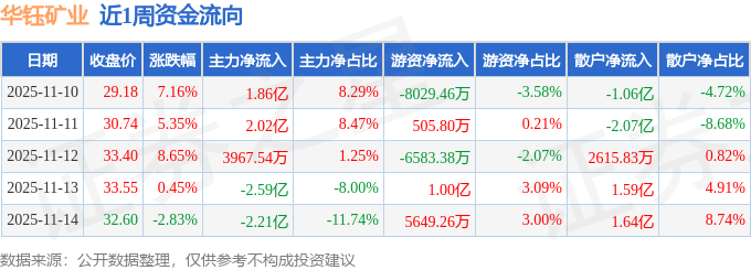 资金流向数据方面,本周华钰矿业主力资金合计净流出5213.73万元,游资资金合计净流入1550.14万元,散户资金合计净流入3663.59万元。本周资金流向一览见下表: