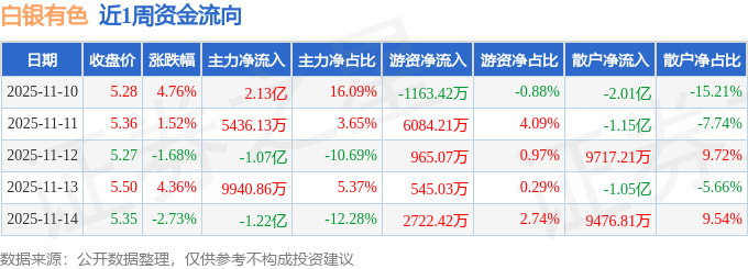 沪深股通持股方面,截止2025年11月14日收盘,白银有色沪股通持股数为4936.47万股,占流通股比为67.0%。