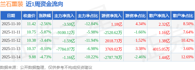 资金流向数据方面,本周兰石重装主力资金合计净流出7.93亿元,游资资金合计净流入1.23亿元,散户资金合计净流入6.7亿元。本周资金流向一览见下表: