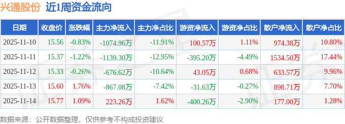 资金流向数据方面,本周兴通股份主力资金合计净流出3534.7万元,游资资金合计净流出683.47万元,散户资金合计净流入4218.17万元。本周资金流向一览见下表: