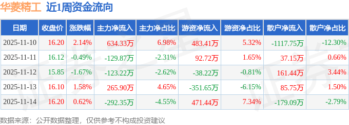 资金流向数据方面,本周华菱精工主力资金合计净流入354.79万元,游资资金合计净流入657.7万元,散户资金合计净流出1012.48万元。本周资金流向一览见下表: