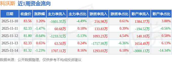 资金流向数据方面,本周科沃斯主力资金合计净流出1003.38万元,游资资金合计净流入1019.07万元,散户资金合计净流出15.69万元。本周资金流向一览见下表: