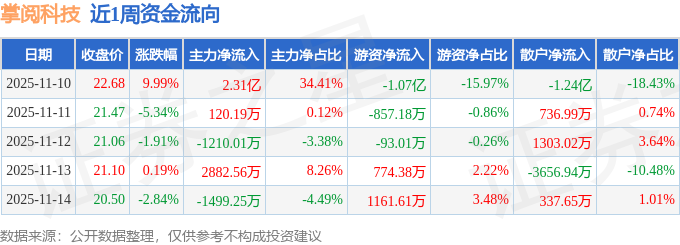 资金流向数据方面,本周掌阅科技主力资金合计净流入2.34亿元,游资资金合计净流出9730.64万元,散户资金合计净流出1.36亿元。本周资金流向一览见下表:
