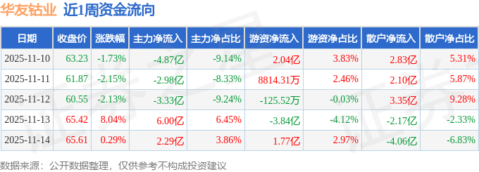 资金流向数据方面,本周华友钴业主力资金合计净流出2.89亿元,游资资金合计净流入8411.03万元,散户资金合计净流入2.05亿元。本周资金流向一览见下表: