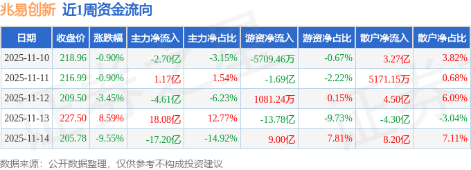 资金流向数据方面,本周兆易创新主力资金合计净流出5.26亿元,游资资金合计净流出6.92亿元,散户资金合计净流入12.18亿元。本周资金流向一览见下表: